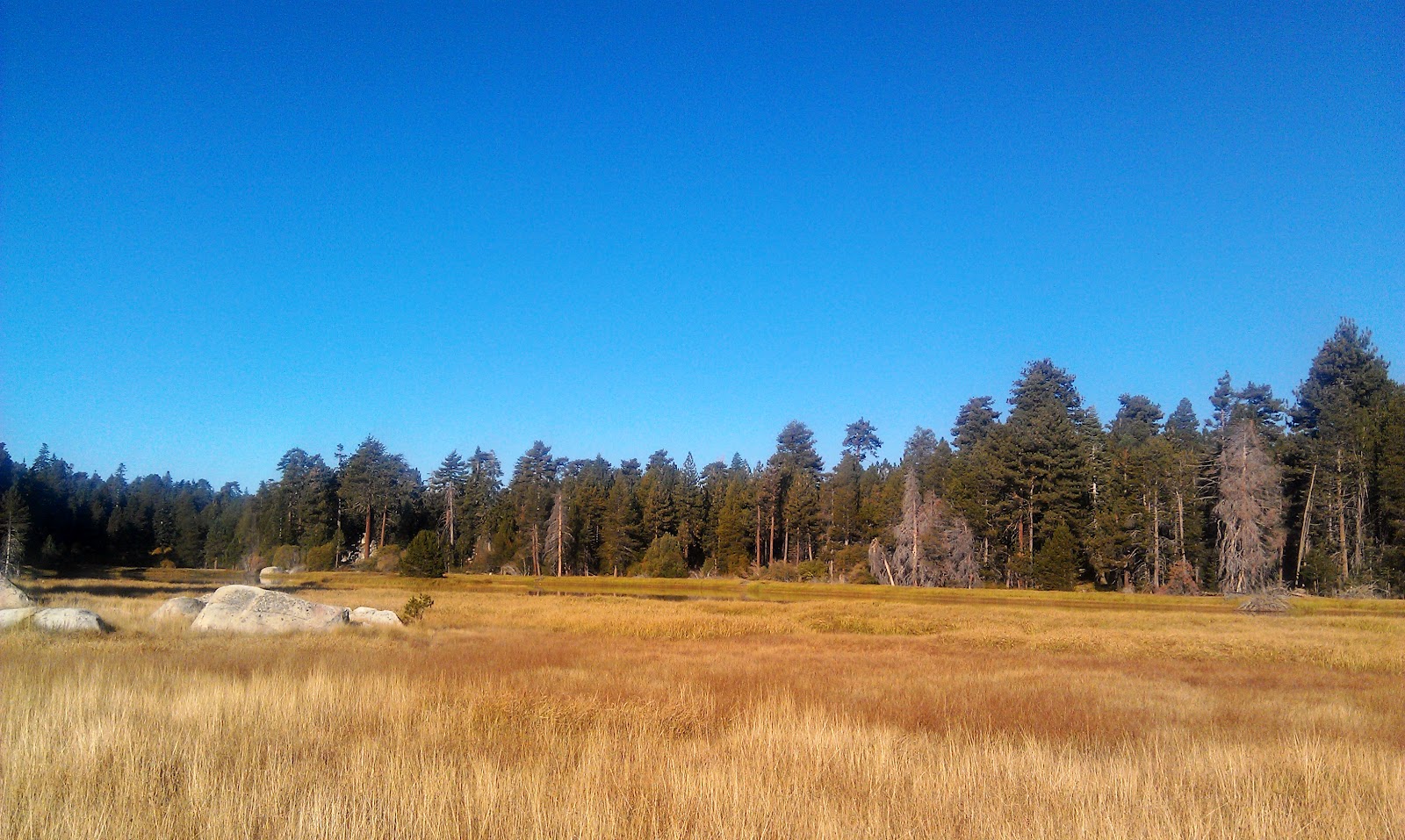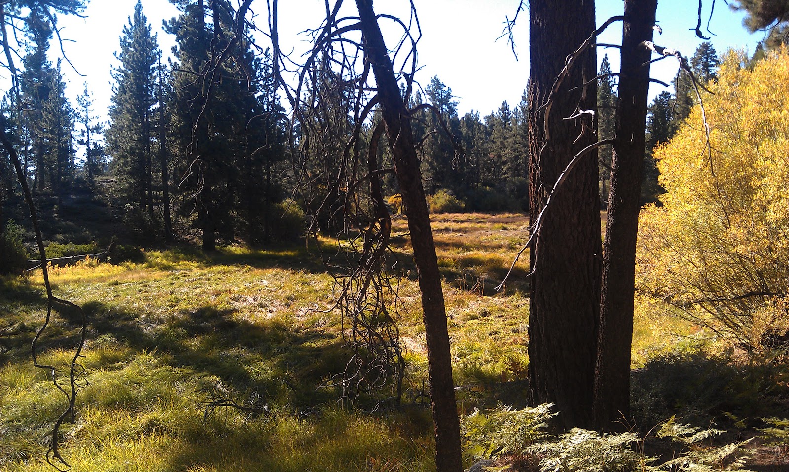 | You know that feeling when you accomplish something you have been dreaming of? Running a marathon, losing weight, getting that new job, it could be any of those. Today was a little goal for me, I found Bluff Lake Reserve, this really cool nature reserve about a hour from my house. I had been reading about Bluff Lake Reserve since last summer and I was dying to go find this meadowy oasis and excited to go run some where new. Everything I had read made it sound like Bluff Lake Reserve was really hard to find and no one I knew from the mountains had ever been there so I was expecting it to be down a horrible dirt road that was un drivable and it would take me hours to run there. Well it did take me hours to run there, but more because I’m slow. The road was not bad at all and I actually discovered I could have parked miles closer and run way less but I had an epic 8.5 mile morning run and found a really nice new running trail through the forest so I do not regret anything that happened this morning. It’s a Monday morning. It’s five a.m. and I worked until eleven last night. I drove home in twenty one minutes, pretty fast for my daily commute. I was in a hurry. I needed to sleep ASAP so I could get up at dawn to run and train for my up coming half marathon. My race is in six days. I’ve had set back after set back this month. First I sprained my back lifting heavy vegetables, than I got a very light case of the flu. I have not been training the way I would like and having the flu, when I do run my body has been so sore even after doing very little mileage, plus when I run I’m coughing crap up ala a hardcore smoker or Stevie Nicks. I’m a mess. The last few days I’ve been eking out a few little runs, thinking I can not possible run 13.7. ??? miles by Sunday morning at eight a.m. Than this morning, after I chugged a bunch of coffee and a sports drink, I ran 8.5 miles near Big Bear Lake… And I wasn’t even tired! I am so happy with my body at this moment.